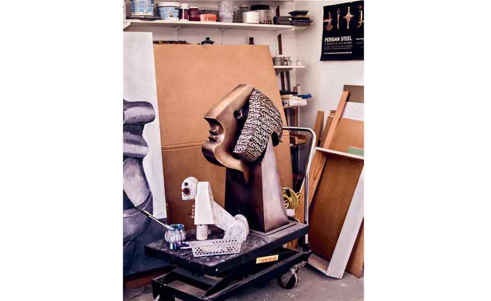 When his passport was returned to him in 1989, Tanavoli emigrated with his young family to Canada, settling in Vancouver, where a growing community of Iranians – among them well-known artists and architects such as Houshang Seyhoun (who designed the Omar Khayyam mausoleum) and Hossein Amanat (whose monument to the Shah, renamed the Freedom Tower, remains a civic beacon in Tehran) had also settled. ‘Vancouver reminds us of the Caspian Sea area,’ explains Tanavoli. It has also traditionally been a more welcoming destination for Iranians than the US.