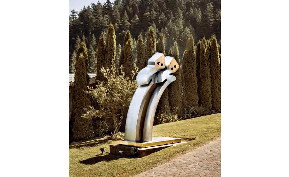 For the so-called ‘father of modern Iranian sculpture’, being far from the madding crowds is a good thing. His home, with its vast Pacific vistas, offers pure refuge. ‘Nothing happens here,’ he sighs contentedly as a pleasure boat cruises past his home – an early Arthur Erickson bungalow expanded by Iranian architect Foad Rafii in the 1990s to contain some of Tanavoli’s most beloved works and his studio.