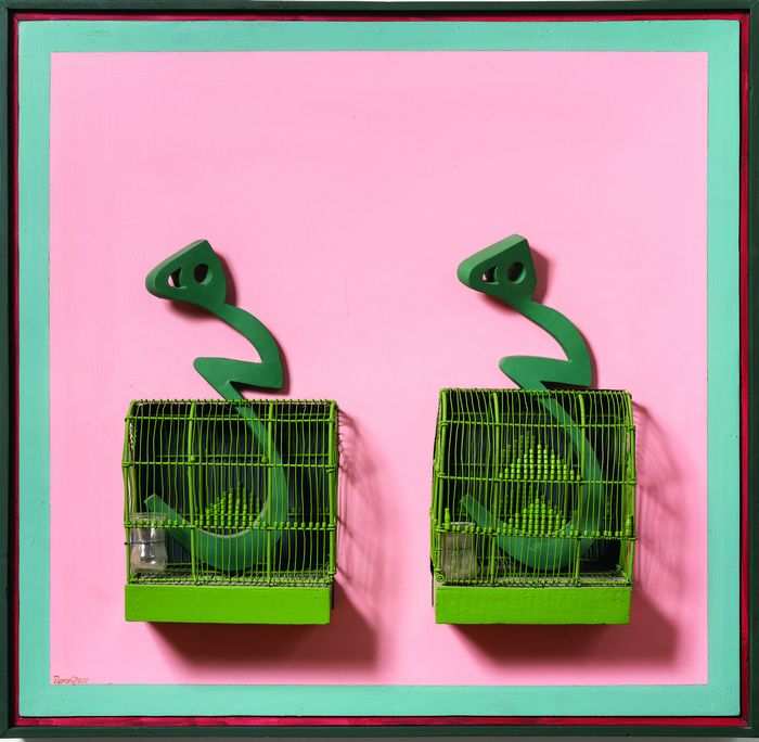 Two Cages, 2011, mixed media (51 x 48 x 10 cm), by Iranian modernist artist Parviz Tanavoli. It is part of Tanavoli’s solo show at the West Vancouver Art Museum. BLAINE CAMPBELL