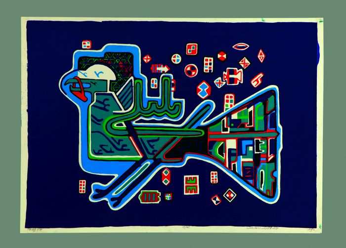 Oh Nightingale, 1974, screen print (81 x 61 cm), by Iranian modernist artist Parviz Tanavoli. It is part of Tanavoli’s solo show at the West Vancouver Art Museum. PARVIZ TANAVOLI