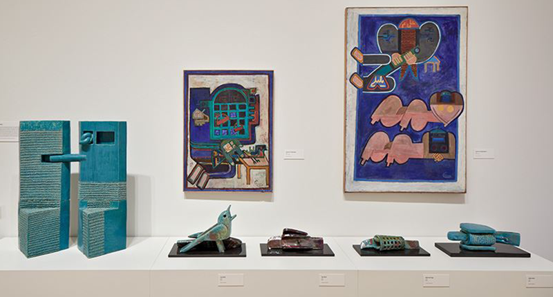 “We have had an amazing good fortune with Parviz’s help to open the door on 60 years of art making,” explained Finchman, as she described the exhibit. “We have a gallery of about 185 objects, a beautiful range of works arrayed around a centerpiece which I would like to think of as the Heech Garden.”